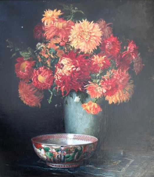 CHRYSANTHEMUMS AND A CHINESE BOWL