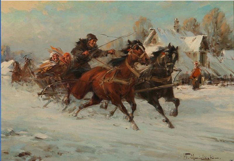 Winter scene with sleigh driving