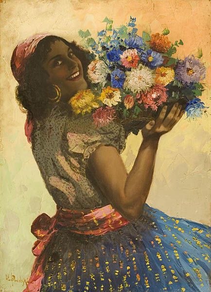 DZIEWCZYNA Z KOSZEM KWIATÓW
