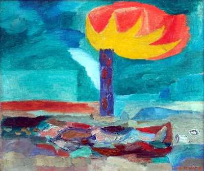 Pejzaż z płonącym drzewem
