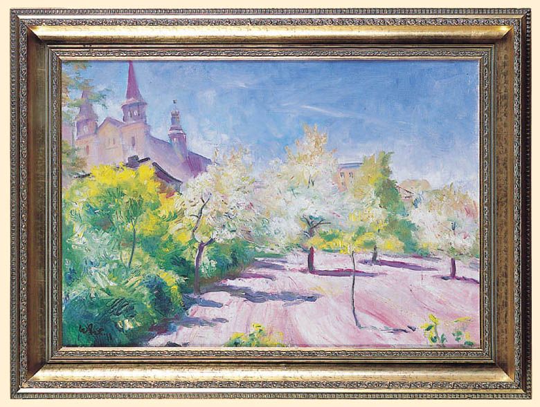 WIOSENNY SAD Z SYLWETĄ KOŚCIOŁA