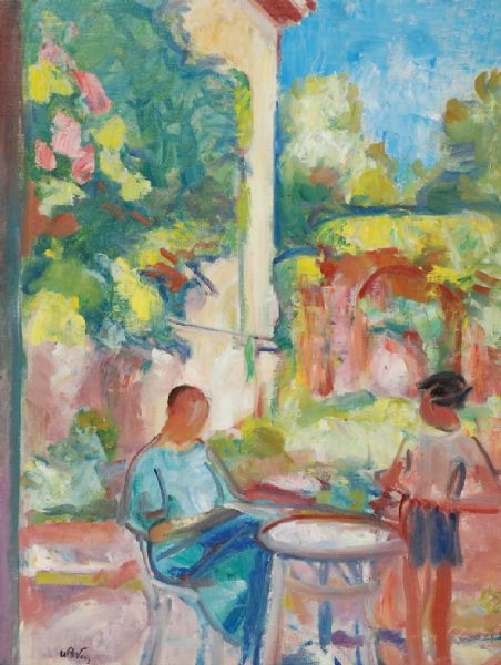 | Żona artysty z synem w ogrodzie przy willi w Krakowie - Aneri i Stasio, ok. | |