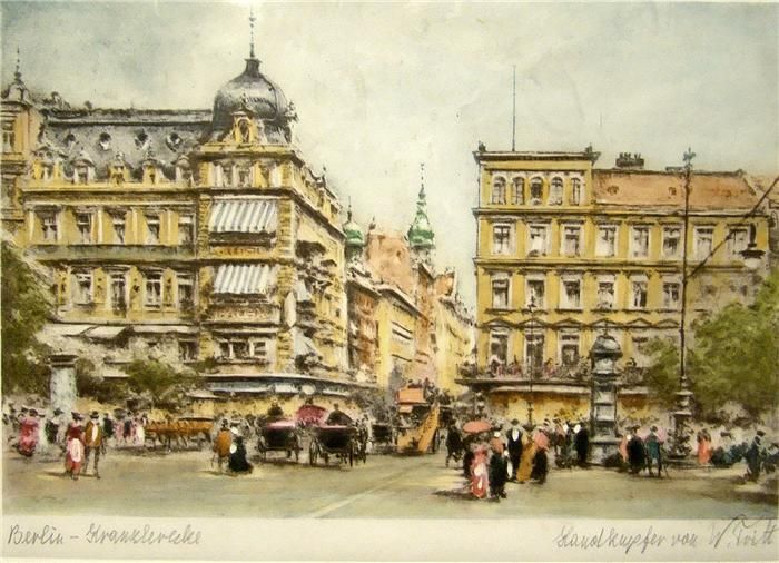 4 Kupferstiche (2x koloiert) mit verschiedenen West-Berliner Ansichten
