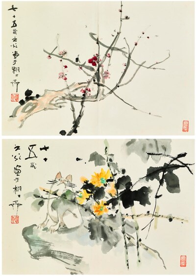 | Plum Blossom/Cat on a Rock | |