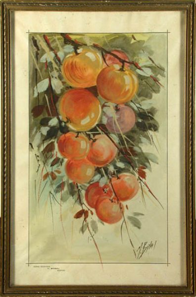 wei Obststilleben. Auf dem einen ein Orangen- und ein Zitronenzweig
