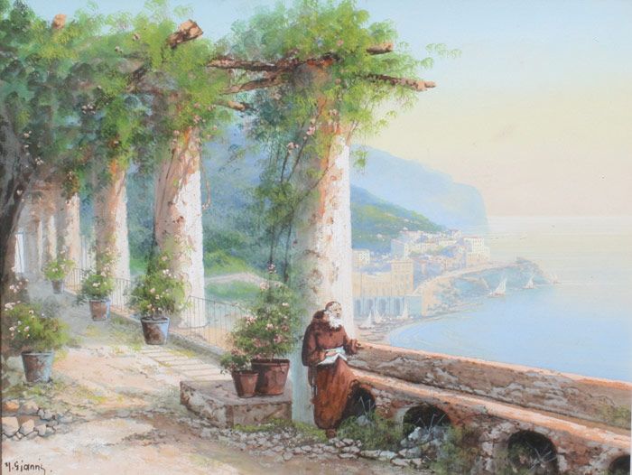 Neapolitan Scene with Monk Seated in Ruins Overlooking the Bay of Naples