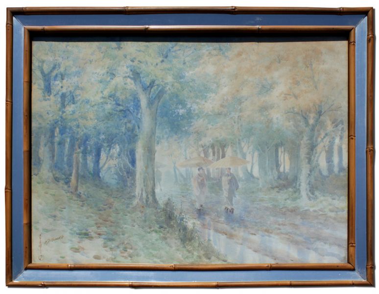 2 Japanese Women Traveling Along a Rainy Forest Path