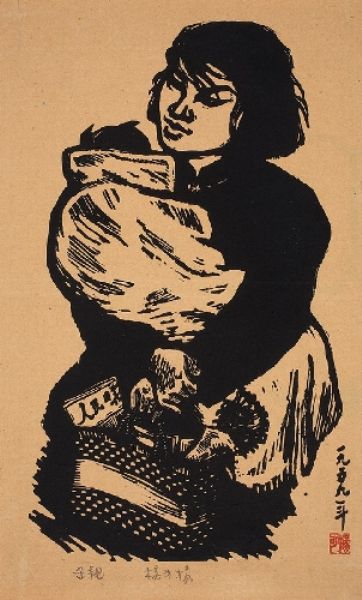Woodcut printed with oil-based ink.