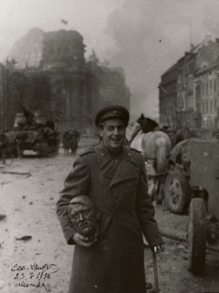 | DER DICHTER YEVGENI DOLMATOWSKI MIT TROPHÄE, BERLIN, 2. MAI 1945 | |