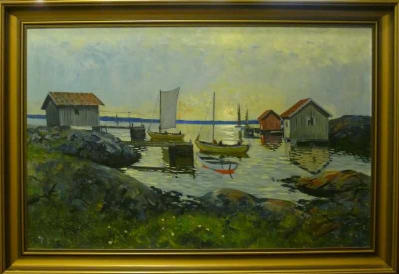 Kustlandskap med sjöbodar