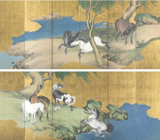 Horses by a stream