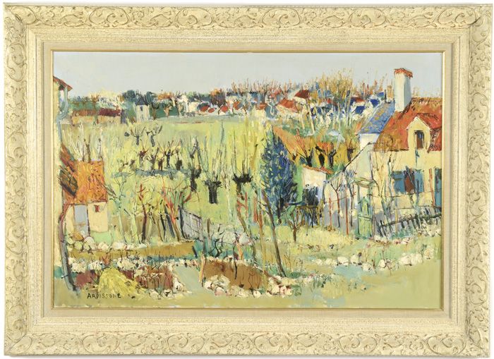 | Brightly colored village landscape in an Impressionist/Fauvist style | |