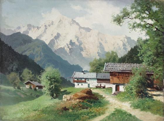 Sommerliche Alpenlandschaft mit Bergbauernhöfen