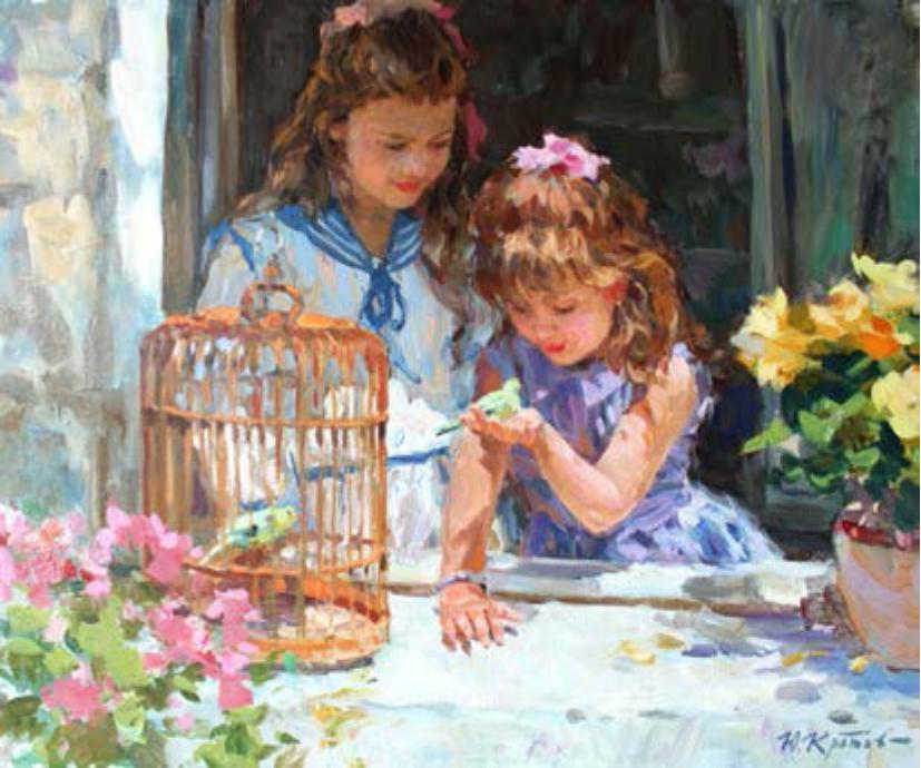Fillettes et oiseaux