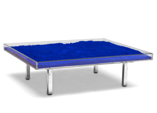 Pigment blue pigment in glass, Plexiglas and chrome metal-plated base