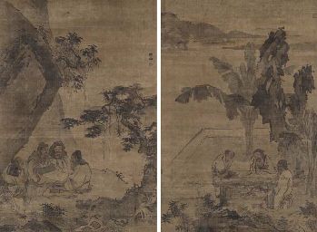 | Ink A pair of hanging scrolls, ink and colour on silk | |