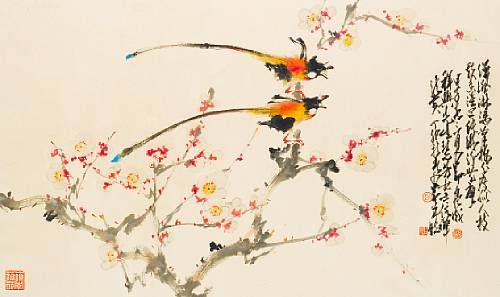 | Pair of Birds on Plum Branch | |