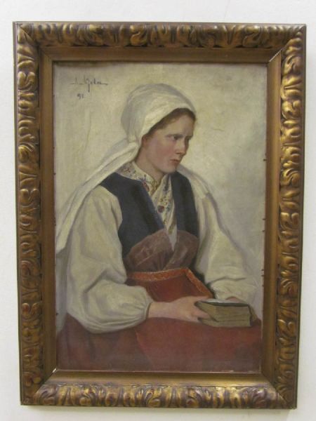 A Hjelm ( 1858 - 1944 ) was a painter. A Hjelm s works have been auctioned off multiple times, with realized prices varying according to the size and medium of the artwork, for instance of 84.13 USD for Portr√§tt in 2011