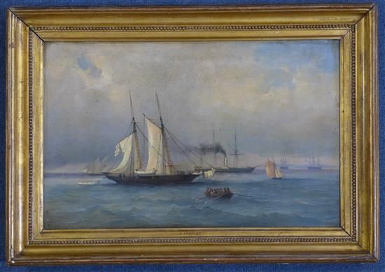 A Ingelez ( 1800 - ) is a painter. A Ingelez s works have been auctioned off multiple times, with realized prices varying according to the size and medium of the artwork, for instance of 357.59 USD for Cutter, paddle steamer and frigates at sea in 2013