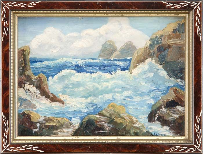 A Robinson ( 1881 - 1956 ) was a Canadian painter. A Robinson s works have been auctioned off multiple times, with realized prices varying according to the size and medium of the artwork, for instance of 287 USD for COASTAL INLET in 2006