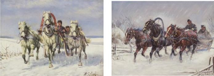 A Schel ( - ) is a painter. A Schel s works have been auctioned off multiple times, with realized prices varying according to the size and medium of the artwork, for instance of 274 USD for Troikas in the Snow in 2012