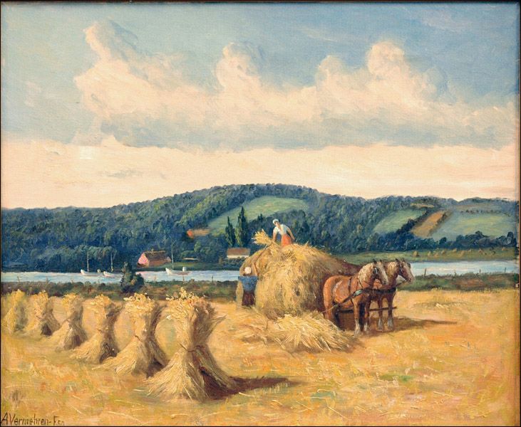 A Vermehren ( 1823 - 1910 ) was a painter. A Vermehren s works have been put up for auction numerous times, with realized prices varying from 113.16 USD for Landscape with cow in 2006 to 175 USD for HAYING THE FIELD in 2008 , based on the size and medium of the artwork.