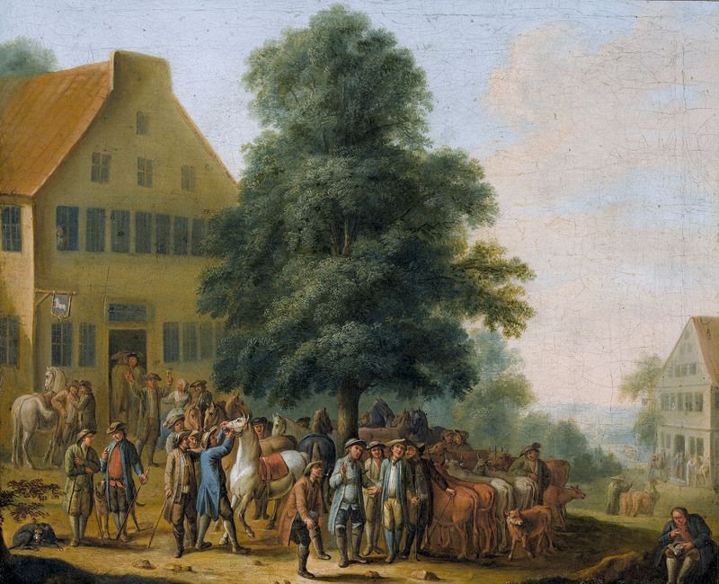 Adolphe Gandon ( 1828 - 1889 ) was a Swiss painter. Adolphe Gandon s works have been put up for auction numerous times, with realized prices surpassing estimated prices, varying from 1920 USD for THE PAUSE OF THE FAMILY CART in 2003 to 4478.76 USD for Der Pferdemarkt. in 2012 , based on the size and medium of the artwork.