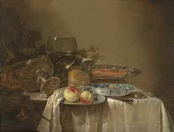 Adriaen Jansz Ocker ( 1621 - 1669 ) was a painter. Adriaen Jansz Ocker s works have been put up for auction numerous times, with realized prices surpassing estimated prices, varying from 27381.72 USD for A LAUGHING PEASANT in 2008 to 79897.08 USD for A roemer, an upturned tazza, grapes, peaches and salmon on pewter platters, olives in a porcelain bowl, and other objects on a p in 2013 , based on