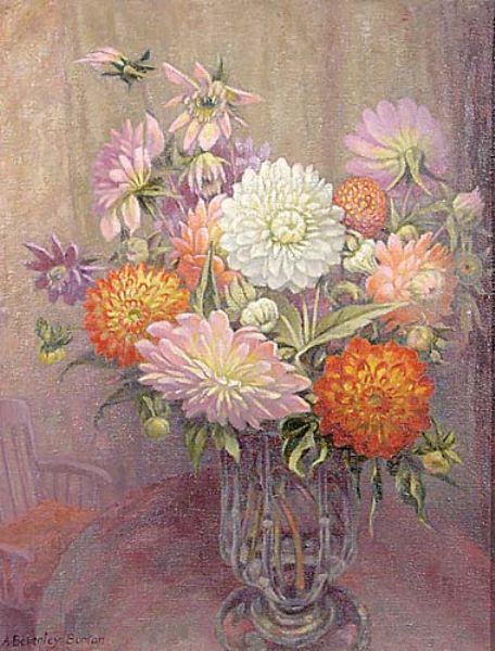 Agnes Beverley Burton ( 1892 - 1967 ) was a British painter. Agnes Beverley Burton s works have been put up for auction numerous times, with realized prices surpassing estimated prices, varying from 171.65 USD for On the Caldew, Cumberland in 2006 to 2750 USD for FLORAL STILL LIFE in 2006 , based on the size and medium of the artwork.