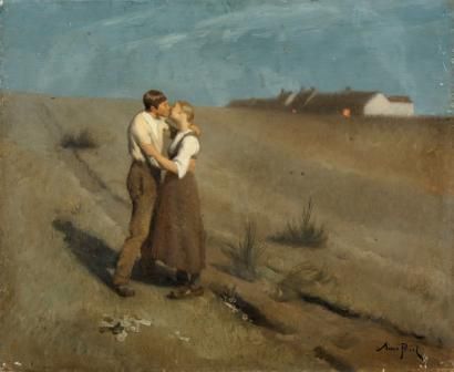 Aimé Perret ( 1847 - 1927 ) was a painter. Aimé Perret s works have been auctioned off multiple times, with realized prices varying according to the size and medium of the artwork, for instance of 1525.86 USD for Le baiser in 2013
