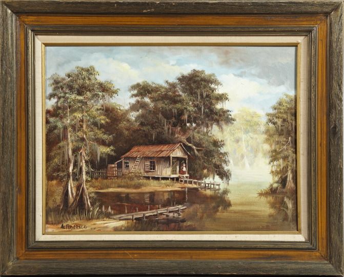 Al Federico ( 1900 - ) is an American painter. Al Federico s works have been put up for auction numerous times, with realized prices varying from 330 USD for Racing the Storm on Lake Pontchartrain in 2009 to 840 USD for Cabin in the Swamp in 2010 , based on the size and medium of the artwork.