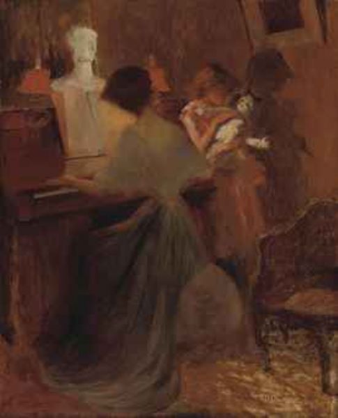 Albert Breaute ( 1853 - 1939 ) was a French painter. Albert Breaute s works have been put up for auction numerous times, with realized prices surpassing estimated prices, varying from 1076.43 USD for French Interior with a Lady seated at a Bureau reading a Letter, near a Sculpture, Chair and Curtained Window in 2005 to 1690.12 USD for Loved ones around the piano in 2011 , based on the size and m