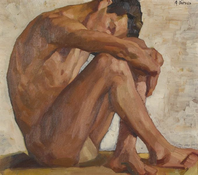 Albert Butschi ( 1888 - ) is a German painter. Albert Butschi s works have been put up for auction numerous times, with realized prices varying from 44.95 USD for Sitzendes Kleinkind. in 2014 to 595.37 USD for Liegender Frauenakt. in 2015 , based on the size and medium of the artwork.