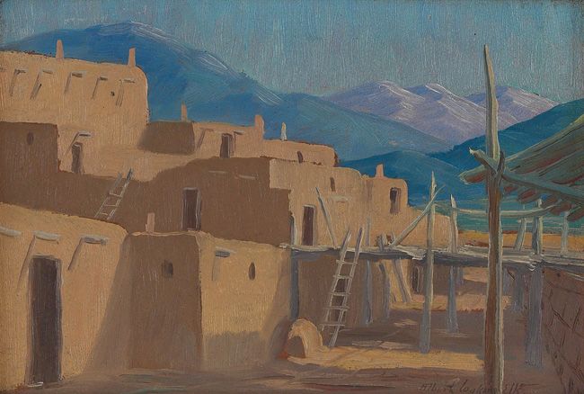 Albert Looking Elk ( 1888 - 1941 ) was an American painter. Albert Looking Elk s works have been put up for auction numerous times, with realized prices surpassing estimated prices, varying from 1000 USD for Pueblo village with distant mountains in 2005 to 1900 USD for Taos Pueblo in 2006 , based on the size and medium of the artwork.