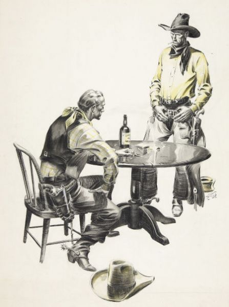 Alexander Gillespie Raymond ( 1909 - 1956 ) was an American painter. Alexander Gillespie Raymond s works have been put up for auction numerous times, with realized prices surpassing estimated prices, varying from 128.46 USD for WHITE SAIL in 2015 to 2500 USD for Another Man's Poison, The Elk Magazine story illustration in 2015 , based on the size and medium of the artwork.