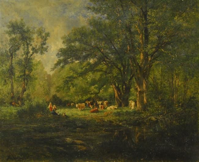 Alexander Rene Veron ( 1826 - 1897 ) was a painter. Alexander Rene Veron s works have been auctioned off multiple times, with realized prices varying according to the size and medium of the artwork, for instance of 1150 USD for COWS AND FIGURES IN A LANDSCAPE in 2011