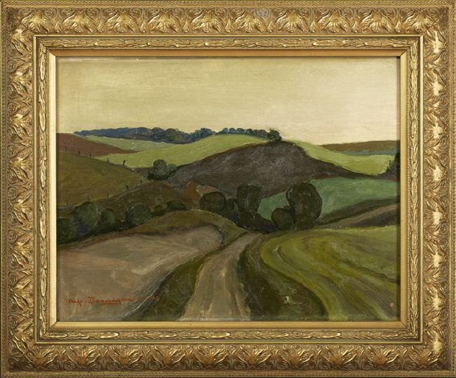 Alfred Braendgaard Andersen ( 1901 - ) is a Danish painter. Alfred Braendgaard Andersen s works have been put up for auction numerous times, with realized prices varying from 124.3 USD for Scenery with hourses on a yard. in 2006 to 461 USD for A Winding Country Road Through Rolling Hills in 2010 , based on the size and medium of the artwork.