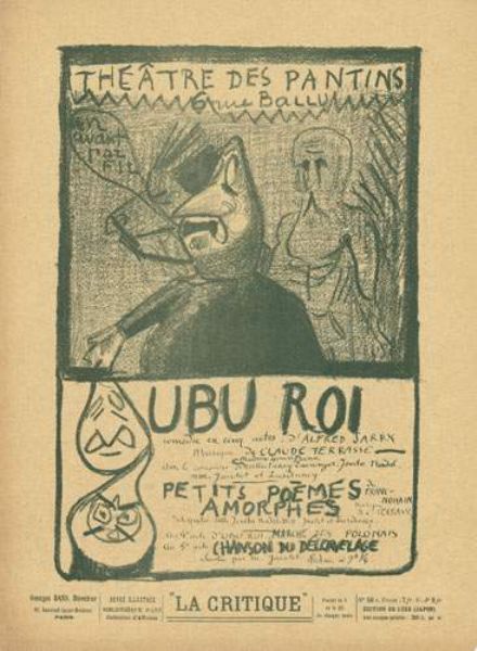 Alfred Jarry ( 1873 - 1907 ) was a French painter. Alfred Jarry s works have been put up for auction numerous times, with realized prices surpassing estimated prices, varying from 1141.55 USD for Ouverture d´Ubu roi ; Marche des Polonais in 2004 to 12480.5 USD for Ubu Roi, Drame en cinq actes en prose in 2005 , based on the size and medium of the artwork.