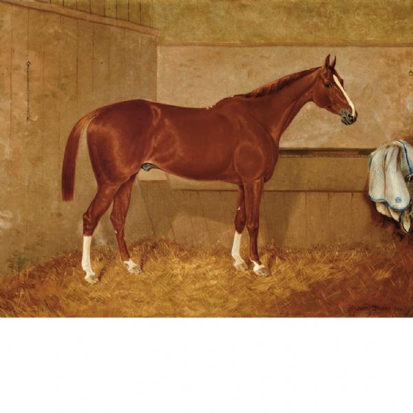 Alfred Moginie Bryant ( 1879 - 1907 ) was a British painter. Alfred Moginie Bryant s works have been put up for auction numerous times, with realized prices varying from 979.77 USD for A chestnut hunter in a paddock; and A dark brown mare by a stable in 2004 to 1750 USD for Sir Richard IV in His Stable in 2012 , based on the size and medium of the artwork.
