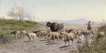 Alfredo De Simoni ( 1800 - 1900 ) was an Italian painter. Alfredo De Simoni s works have been auctioned off multiple times, with realized prices varying according to the size and medium of the artwork, for instance of 2006.79 USD for Herding sheep through the Roman Campagna in 2009