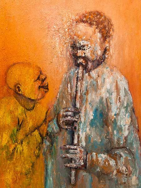 Alphen Ntimbane ( 1948 - ) is a South African painter. Alphen Ntimbane s works have been auctioned off multiple times, with realized prices varying according to the size and medium of the artwork, for instance of 232.33 USD for Pipe Player in 2014