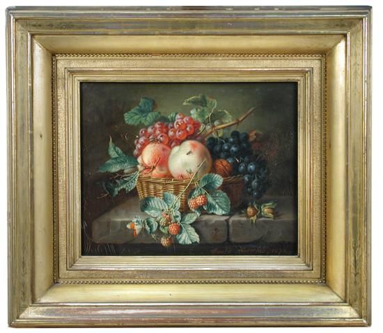 Amelie Kaercher ( - ) is a painter. Amelie Kaercher s works have been auctioned off multiple times, with realized prices varying according to the size and medium of the artwork, for instance of 2754 USD for Still life of red and black grapes, walnuts, cobnuts, raspberries in a basket on a stone ledge; and Still life of roses in a bas in 2014