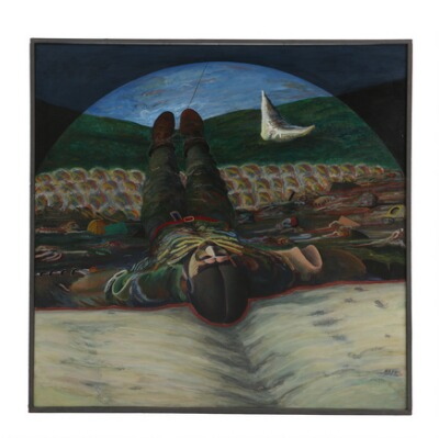 Anders Kirkegård ( 1945 - ) is a Danish painter. Anders Kirkegård s works have been put up for auction numerous times, with realized prices surpassing estimated prices, varying from 284.51 USD for Skitse til det store Dr√∏mmesejleren in 2003 to 4336.21 USD for Den syge √∏rne-unge in 2005 , based on the size and medium of the artwork.