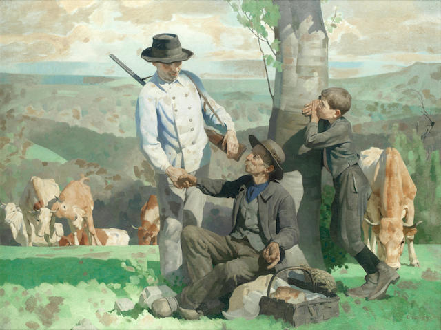 Andre Auguste Charigny ( 1902 - 2000 ) was a French painter. Andre Auguste Charigny s works have been put up for auction numerous times, with realized prices surpassing estimated prices, varying from 1035 USD for Still Life with Fruits in 2003 to 5176.18 USD for French landscape with figures and cattle in 2017 , based on the size and medium of the artwork.