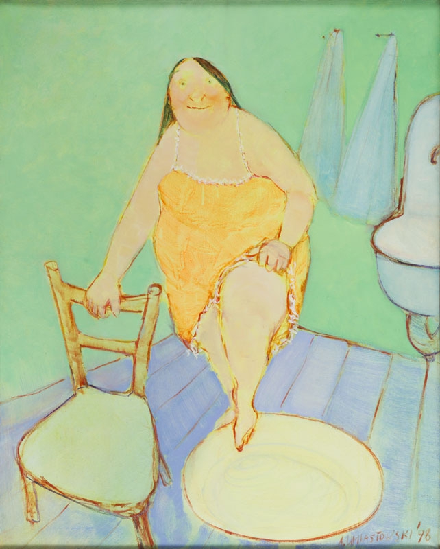 Andrzej Umiastowski ( 1956 - ) is a painter. Andrzej Umiastowski s works have been put up for auction numerous times, with realized prices surpassing estimated prices, varying from 451.28 USD for Man with a Fish in 2005 to 1396.54 USD for A Lavatory in 2016 , based on the size and medium of the artwork.