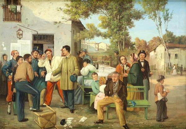 Angelo Trizzini ( 1827 - 1904 ) was an Italian painter. Angelo Trizzini s works have been auctioned off multiple times, with realized prices varying according to the size and medium of the artwork, for instance of 2577.84 USD for TRATTATO DI FRANCAVILLA in 2007