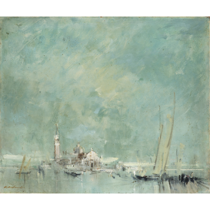 Angiolo Alebardi ( 1883 - 1969 ) was an Italian painter. Angiolo Alebardi s works have been put up for auction numerous times, with realized prices surpassing estimated prices, varying from 1622.96 USD for VARI PAESAGGI in 2006 to 2175.37 USD for Laguna veneta con la chiesa di San Giorgio in 2017 , based on the size and medium of the artwork.