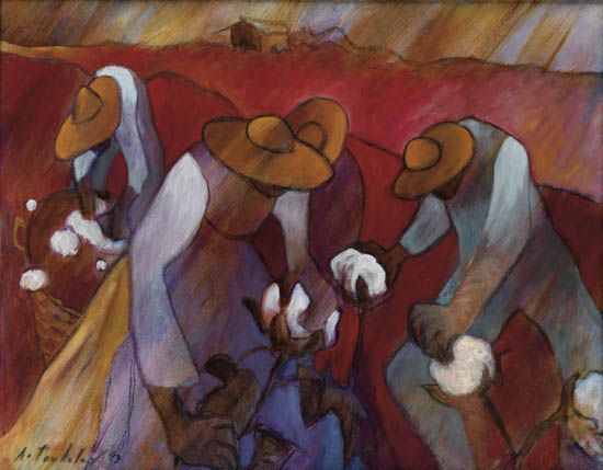 Ann Tanksley ( 1934 - ) is an American painter. Ann Tanksley s works have been put up for auction numerous times, with realized prices surpassing estimated prices, varying from 200 USD for FRIENDS in 2008 to 6000 USD for Untitled (Workers Picking Cotton). in 2011 , based on the size and medium of the artwork.