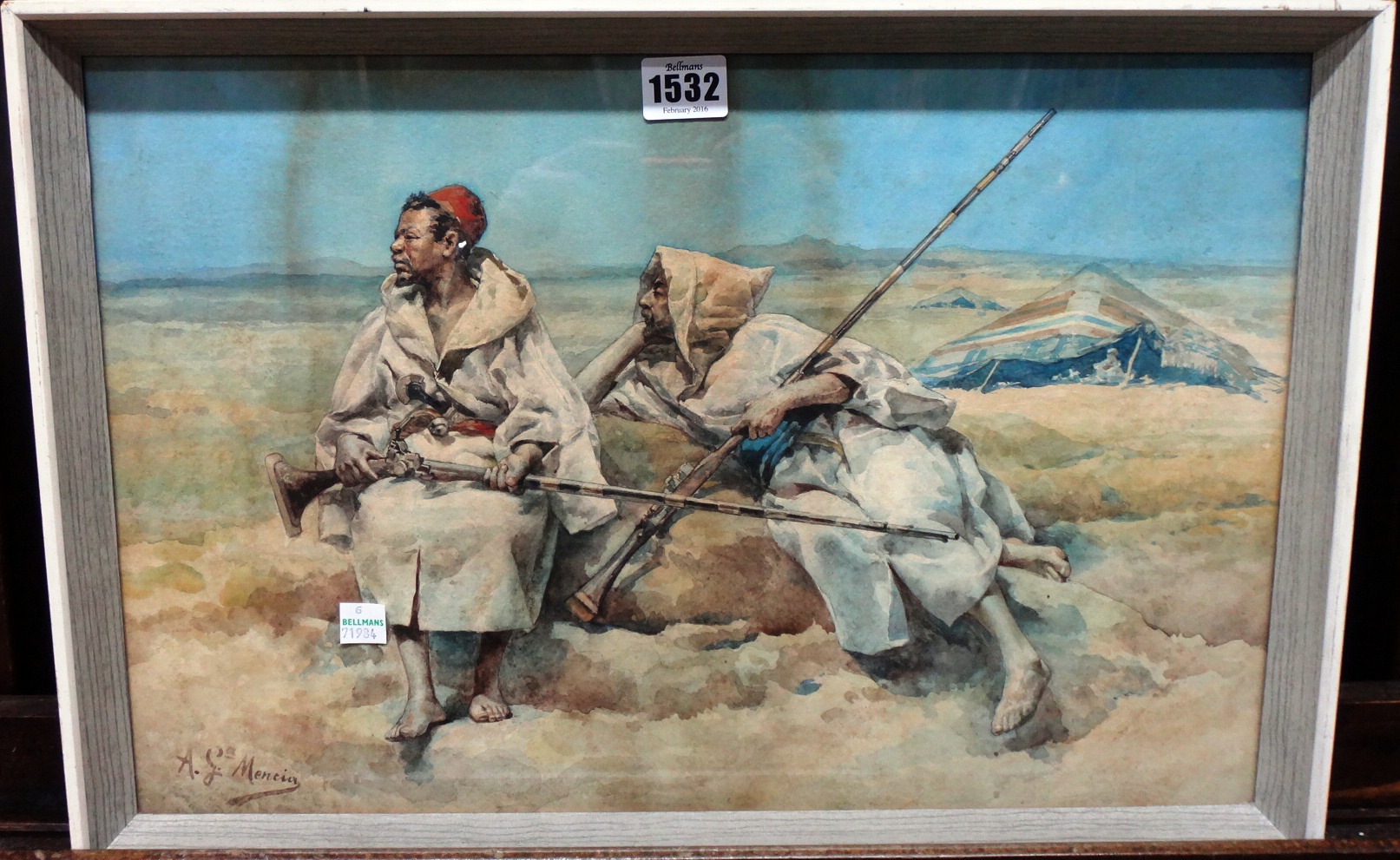 Antonio Garcia Mencia ( 1853 - 1915 ) was a painter. Antonio Garcia Mencia s works have been put up for auction numerous times, with realized prices varying from 88.26 USD for Boîte ficelée in 2014 to 138.69 USD for Moorish soldiers in 2016 , based on the size and medium of the artwork.