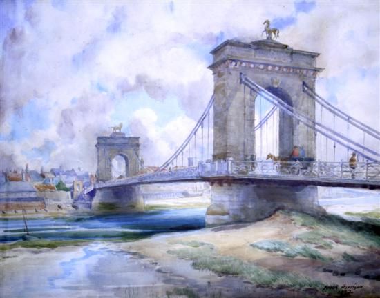 B Harrison ( 1854 - 1929 ) was an American painter. B Harrison s works have been put up for auction numerous times, with realized prices varying from 115 USD for Landscape in 2005 to 146.61 USD for Old Shoreham Bridge in 2008 , based on the size and medium of the artwork.